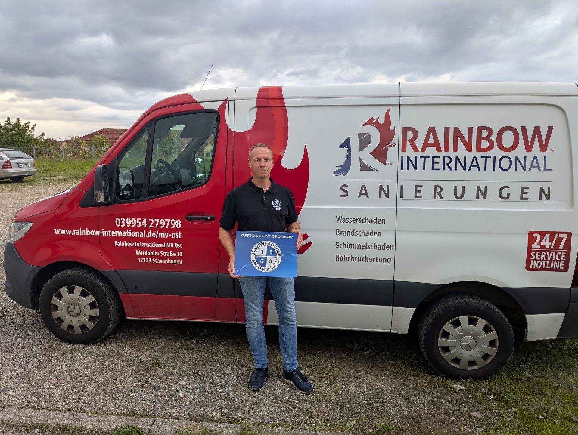 Der Saisonstart steht unmittelbar bevor, aber die Background - Arbeit ist schon lange im Gange. Wir dürfen Euch unser neustes Mitglied im Sponsorenpool des Stavenhagener SV vorstellen: Maik Burchart ist Inhaber der Rainbow Sanierungen MV in Stavenhagen und hat rund 12 Mitarbeiter. Das Kerngeschäft der Firma ist der Komplettservice nach Brand- oder Wasserschäden. Von Schadensbegutachtung bis zur kompletten Sanierung und Abrechnung über die Versicherungsträger. Maik ist ein Junge aus der Region und hat Fußball gespielt. Seit längerer Zeit verfolgt er die Vereinsentwicklung und ist ein Fan des Handballsport's in Stavenhagen geworden. Oft ist er bei den Heim- aber auch Auswärtsspielen unserer Teams dabei. Folglich sein Entschluss, sich künftig im Verein mit einzubringen und den Verein bei der Weiterentwicklung finanziell langfristig zu unterstützen. Der SSV sieht sich auch durch das künftige Engagement der Firma in seinem Weg bestätigt, denn mehr und mehr Unternehmen aus der Stadt und der Region unterstützen den Stavenhagener SV.