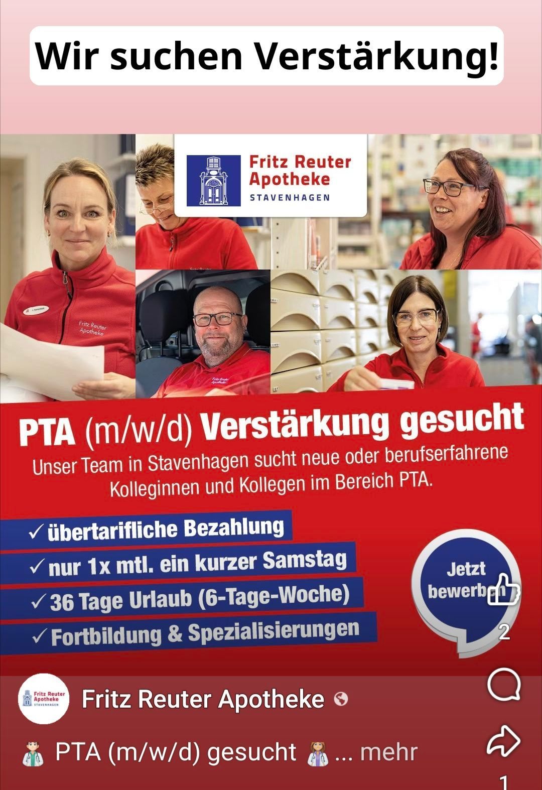 Gemeinsam machen wir uns Stark für unsere Region. Unsere Sponsor braucht unsere Hilfe und Unterstützung bei der Besetzung neuer Stellen. Das Unternehmen stellt sich gerade neu auf und sucht daher dringend Mitarbeiter. Bitte teilt in Euren Netzwerken diese Stellenanzeigen. Vielleicht ist aber auch für Euch etwas dabei. Gesucht werden: - Assistent der Geschäftsleitung - IT Systemadministrator für Produktion & Maschinenanbindung - stellv. Leitung Versand & Verpackung - Verkäufer für Filialen in Stavenhagen & Waren Alle Jobs für m/w/d, unbefristet und ab sofort!! Interessenten melden sich bei der: Pommernland Fleisch-und Wurstwaren GmbH z.H. Personalabteilung Schultetusstraße 37 d 17153 Stavenhagen Am schnellsten geht es: - per Telefon 039954-365-0 - Email: personal@pommernland.com
